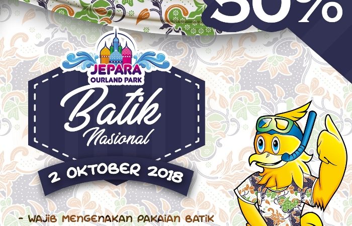 Dalam memperingati Hari Batik Nasional yang jatuh pada tanggal 2 Oktober 2018 mendatang, Jepara Ourland Park memberikan promo DISKON 50%. Promo ini memberikan harga khusus bagi para pengunjung yang mengenakan pakaian batik ketika berkunjung ke Jepara Ourland Park. Syarat dan ketentuan berlaku. Untuk keterangan lebih lanjut, silakan hubungi kontak 0291- 4260388 (09:00 – 17:00 WIB) […]